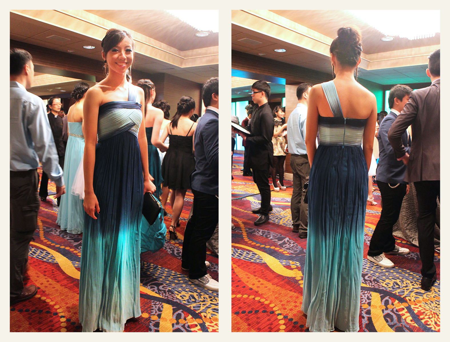 Looking at the array of long gowns donned by many of the Year Sixes, one would have thought immediately that voluminous maxi dresses led the way for 2013’s Grad Night. Ye Tong channeled this very look in a sleek and sweet mint green maxi dress with crystal embellishments framing its v-shaped neckline and soft folds cascading from the back of her daring, bare-back dress. She completed the look with a crystal studded clutch from Aldo, which complemented the crystal detailing on her dress perfectly.