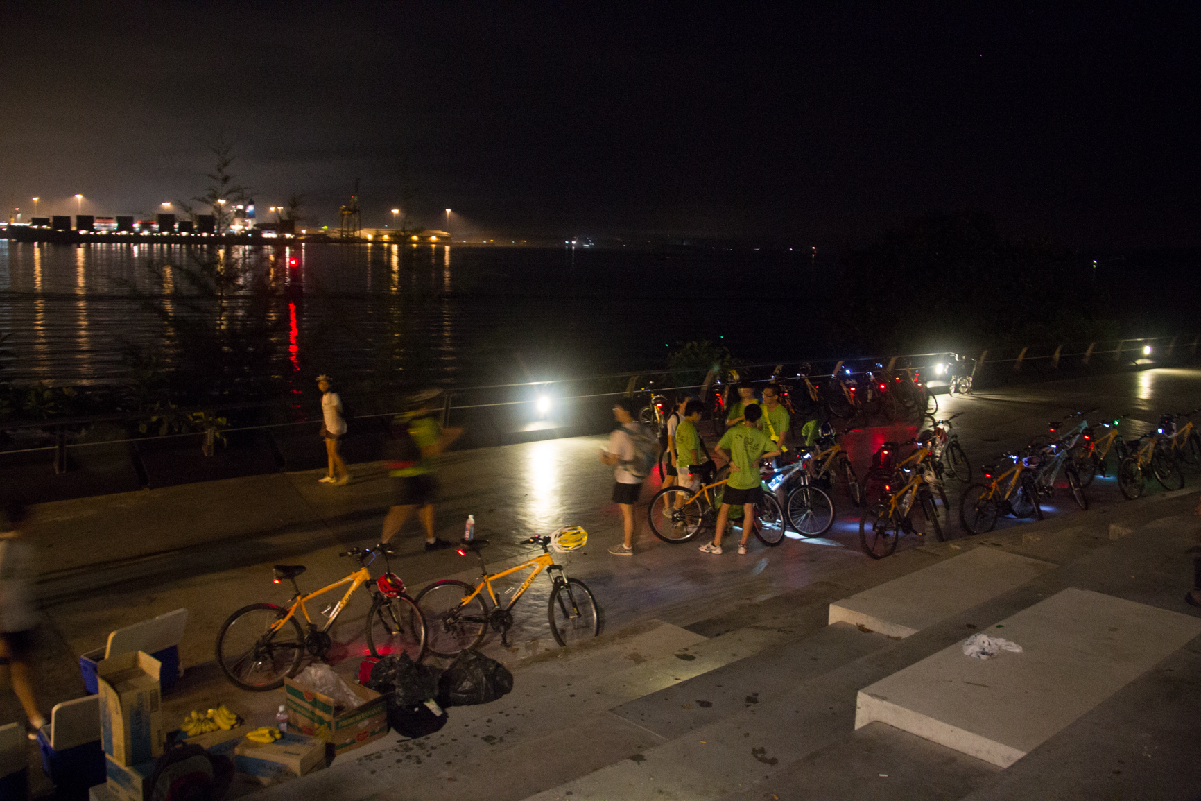 Participants had been split into groups of eight, each led by three student members of Raffles Outdoor Adventure and Activities Club (ODAC) who acted as the guides and facilitators of our night adventure. They had already traveled the route once as a CCA, and were well-prepared to help us along. Starting times were staggered to avoid clutter along the route we took, which led us through exactly 54.77km of park connectors and cycling tracks. We kicked off at Bishan Park and planned to travel through Serangoon and Punggol Waterway Park, then cycle along the north-eastern border of Singapore, a route that would take us right to Changi Airport and finally on to the familiar southern beaches of East Coast Park.