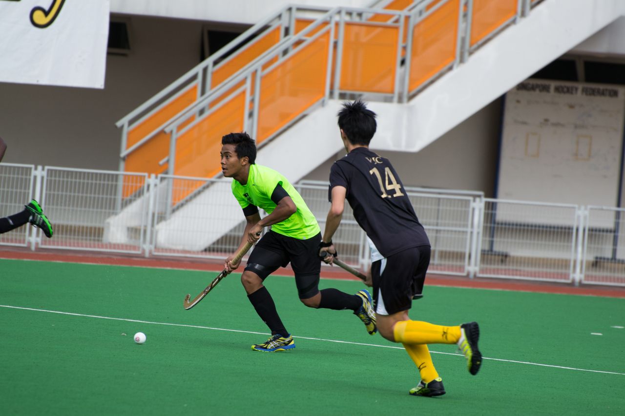 Cheers from the Victorian crowd were overwhelmingly thunderous compared to the relatively passive Rafflesians due to a significant difference in numbers, but the hockey boys remained intensely focused on the match. While VJ had a reputation for strong short corners, converting almost all of them into goals in previous matches, the RI side valiantly fought back all their attempts and kept the scoreline clear. Even as frustration was building up on the VJ side, a lucky break for them led to RI conceding a goal in the last two minutes of the match.